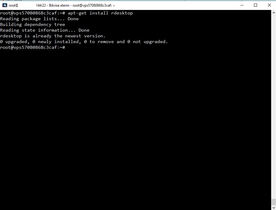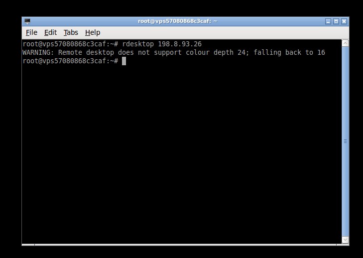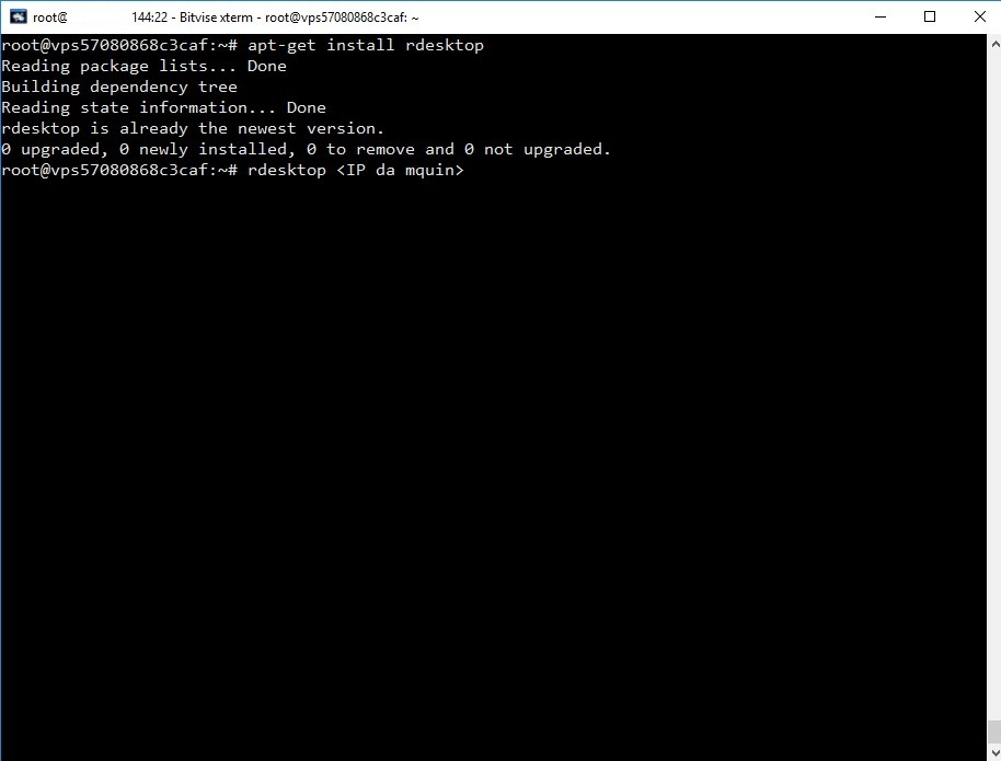 2. Conectar com seu VPS, através do comando: rdesktop IP da máquina. No lugar de "IP da Máquina" coloque o número do IP da sua VPS Windows (Ex. rdesktop 198.8.93.69), conforme obtido no tutorial sobre esse assunto.