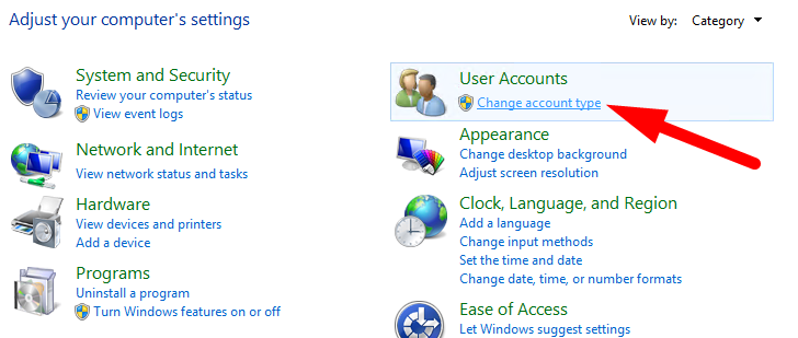 3. Clique em "Change account type".