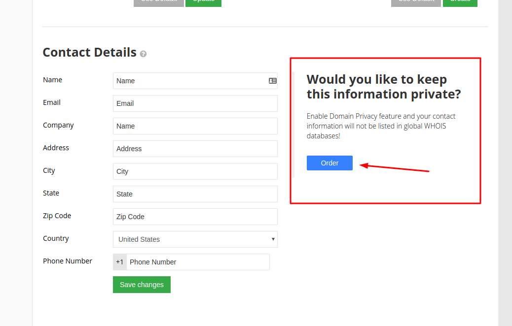 Clique no botão Ordem para prosseguir e você será redirecionado para a página de pagamento. A privacidade do domínio custa $ 5 por ano, por domínio.