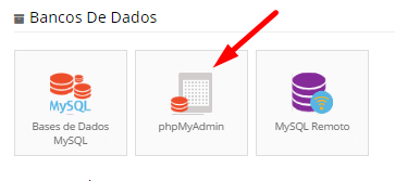 Cada um dos seus bancos de dados terá uma interface phpMyAdmin separada. Para acessar o phpMyAdmin para seus bancos de dados criados, localize o menu phpMyAdmin em seu painel de controle de sites.