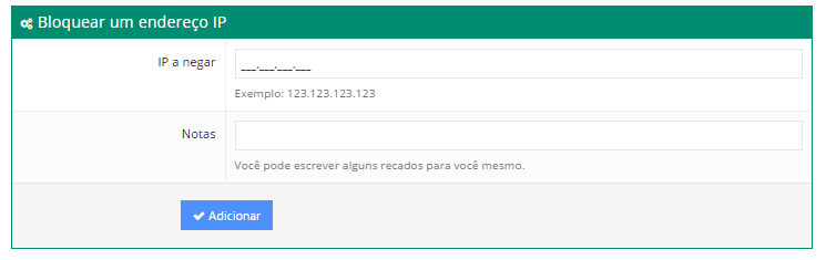 Dentro do gerenciador, usando a seção Bloquear um Endereço IP, você pode bloquear IPs indesejados e deixar uma nota (ótimo para lembrar por que esse IP específico foi bloqueado se for apenas temporário).