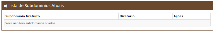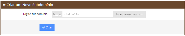 No menu Subdomínios, dê uma olhada na seção Criar um novo subdomínio. Você pode escolher qual domínio será usado na criação do subdomínio, bem como o nome para o subdomínio lá.