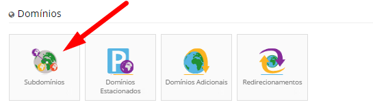 Para criar um subdomínio, acesse o Painel de controle do seu site e localize o menu Subdomínios.