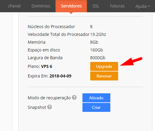 Como posso fazer upgrade/downgrade do meu servidor VPS?