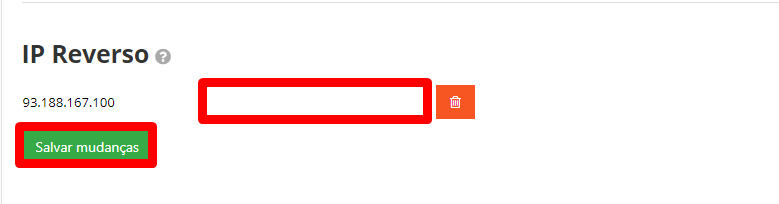 Depois, verifique se há "Reverse IP" na seção de registro. Adicione seu domínio ao lado do seu IP e o seu registro rDNS estará pronto!