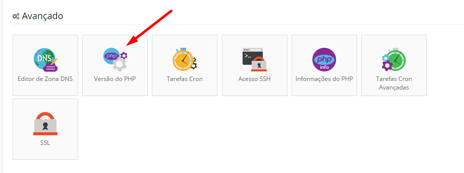 Para alterar o valor max_input_vars da sua conta, acesse o Painel de controle do seu site e pesquise o menu Configuração do PHP. Você também pode digitar "PHP" na barra de pesquisa na parte superior da página do painel de controle.