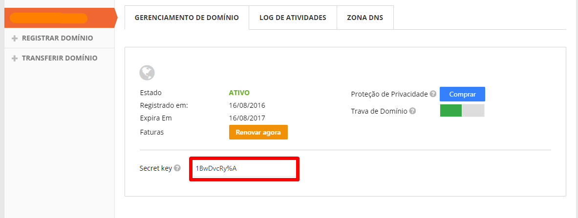 - Certifique-se de que seu domínio não está bloqueado (Bloqueio de domínio deve ser definido como DESLIGADO);